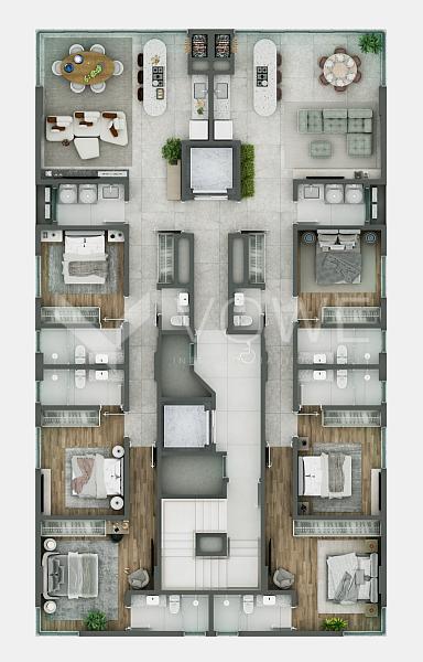 • Com 3 suítes luxuosas e um amplo living integrado, esses apartamentos foram projetados para proporcionar não apenas conforto, mas também uma sensação única de liberdade e movimento. Além disso, as janelas proporcionam um enquadramento perfeito da natureza, convidando a serenidade e a beleza natural para o interior de sua casa.